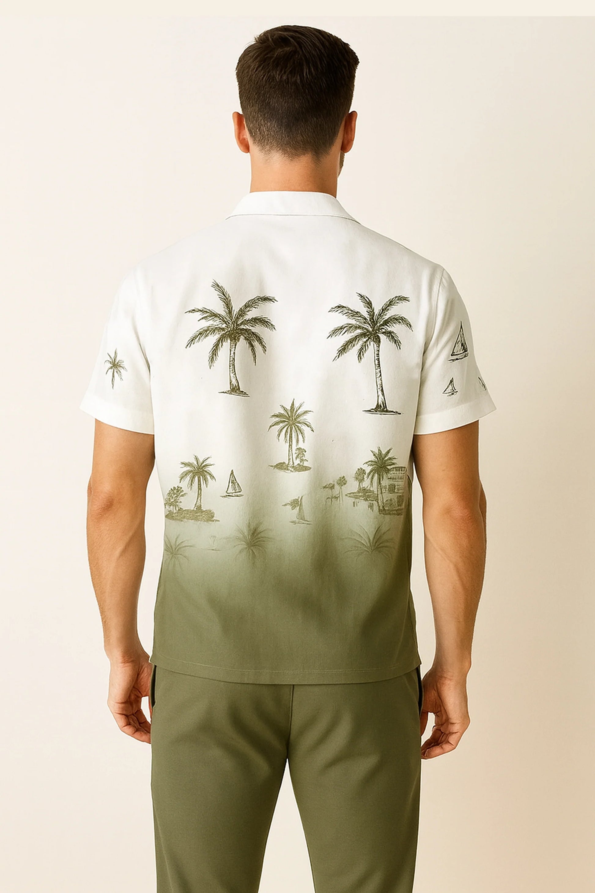 Green Shady Men's Casual Half Sleeve Shirt and Full Pant Set - XPCRDF