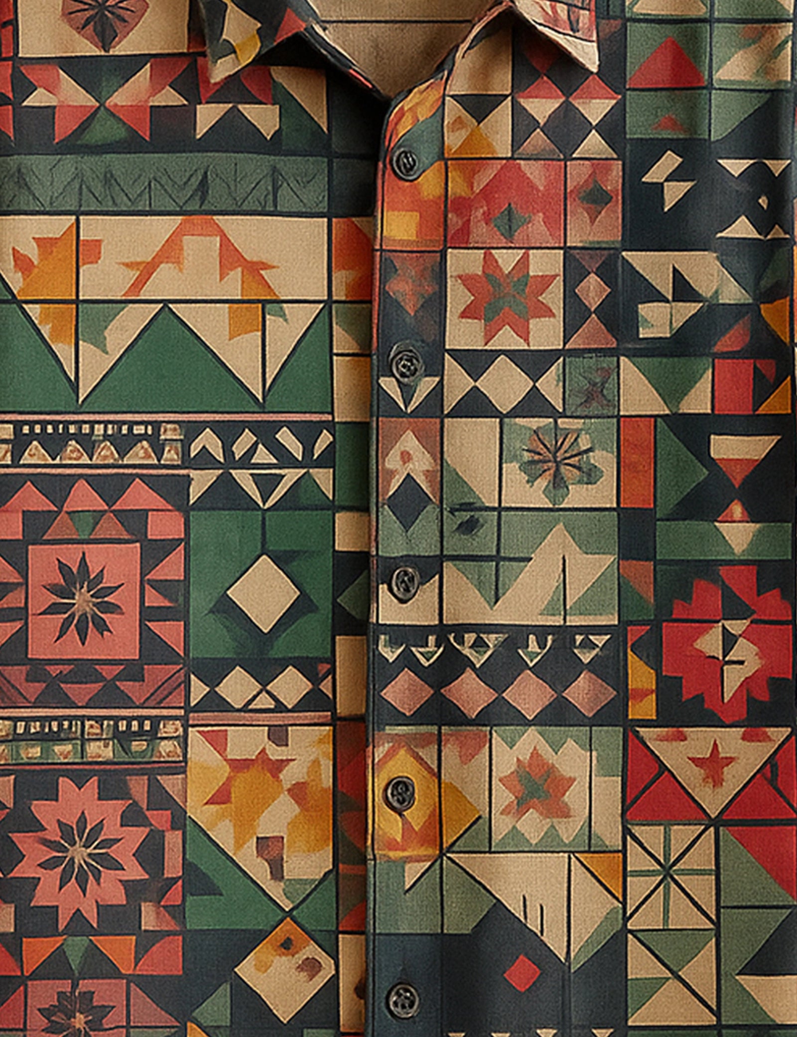Men's Bohemian Patchwork – Printed Half Sleeve Shirt - XPST