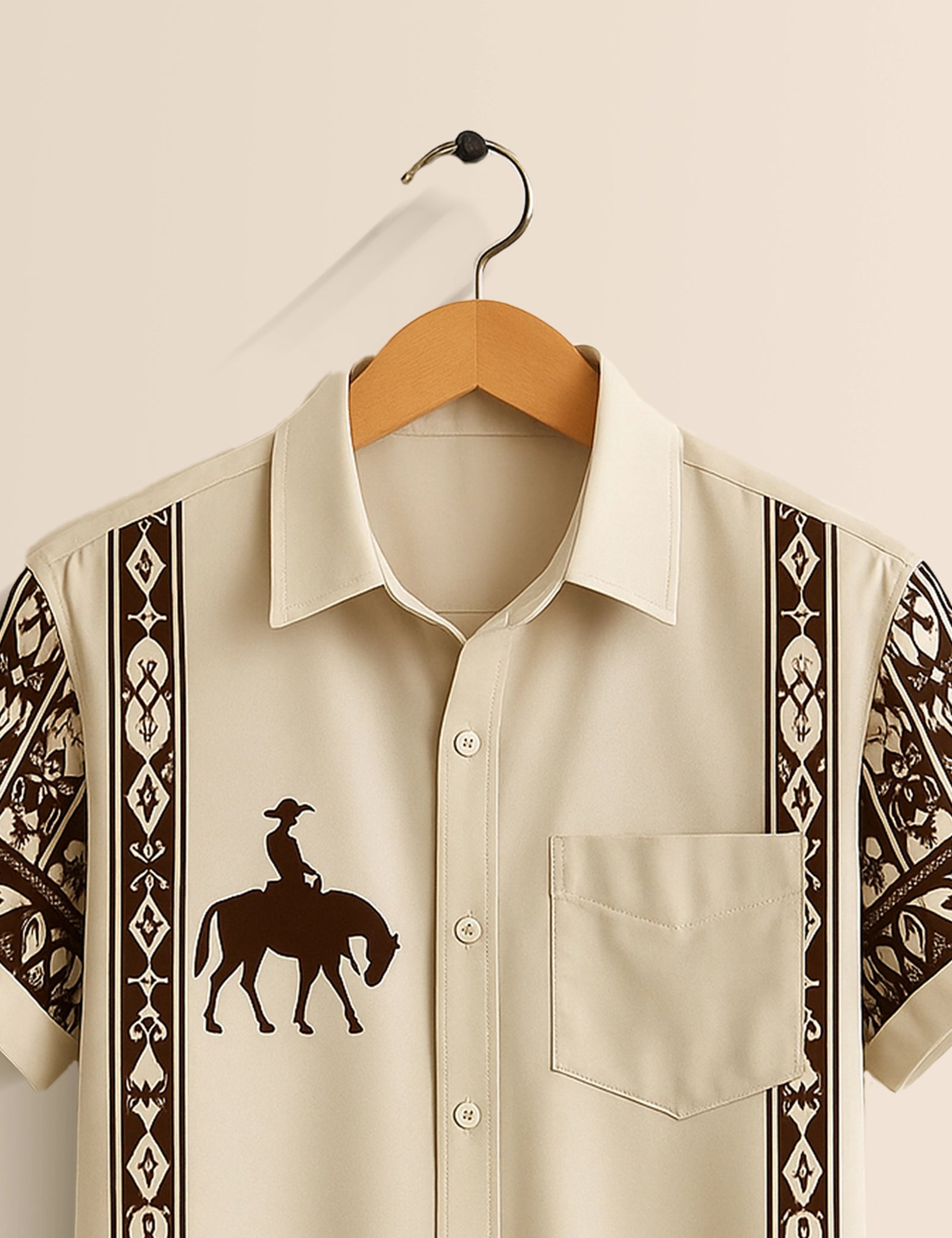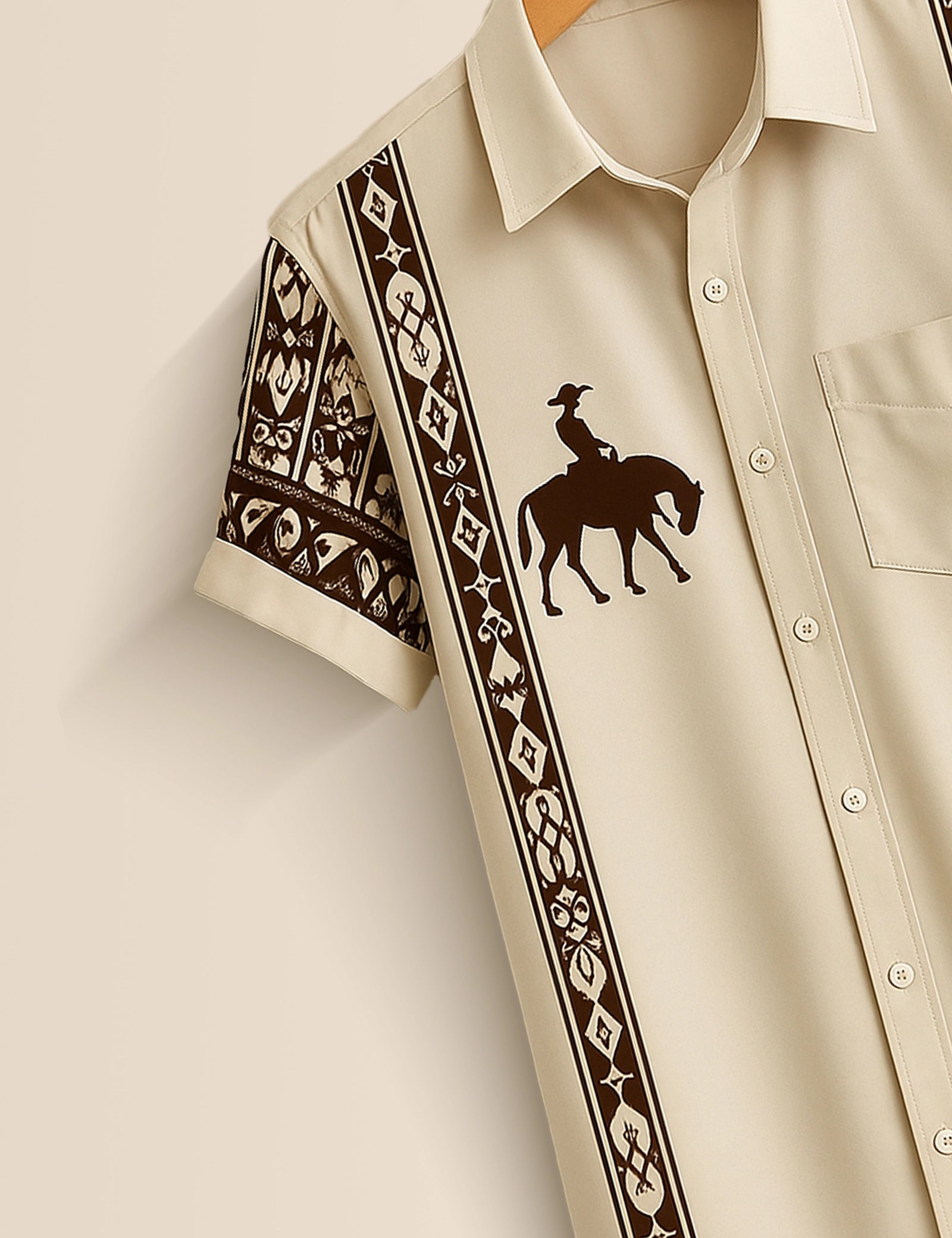 Men's Cowboy Silhouette Tribal – Printed Half Sleeve Shirt - XPST